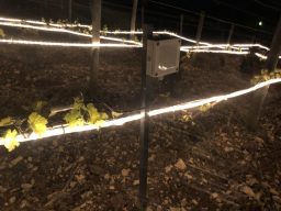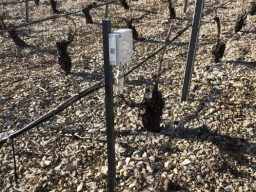 Une sonde est installée directement dans la parcelle, au plus près des parties sensibles des plantes (bourgeons, fleurs, jeunes pousses).